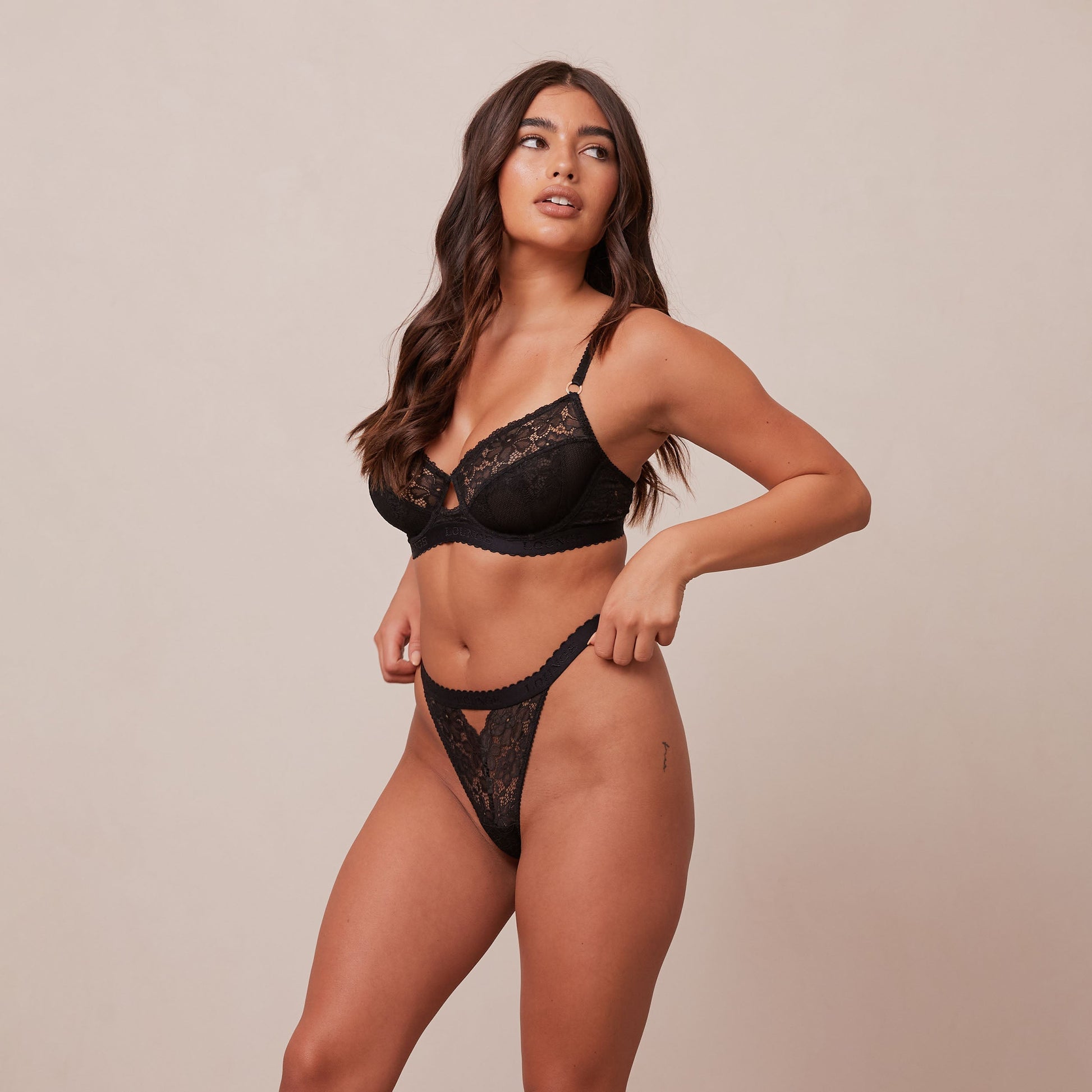 - Decorative picot elastics throughout