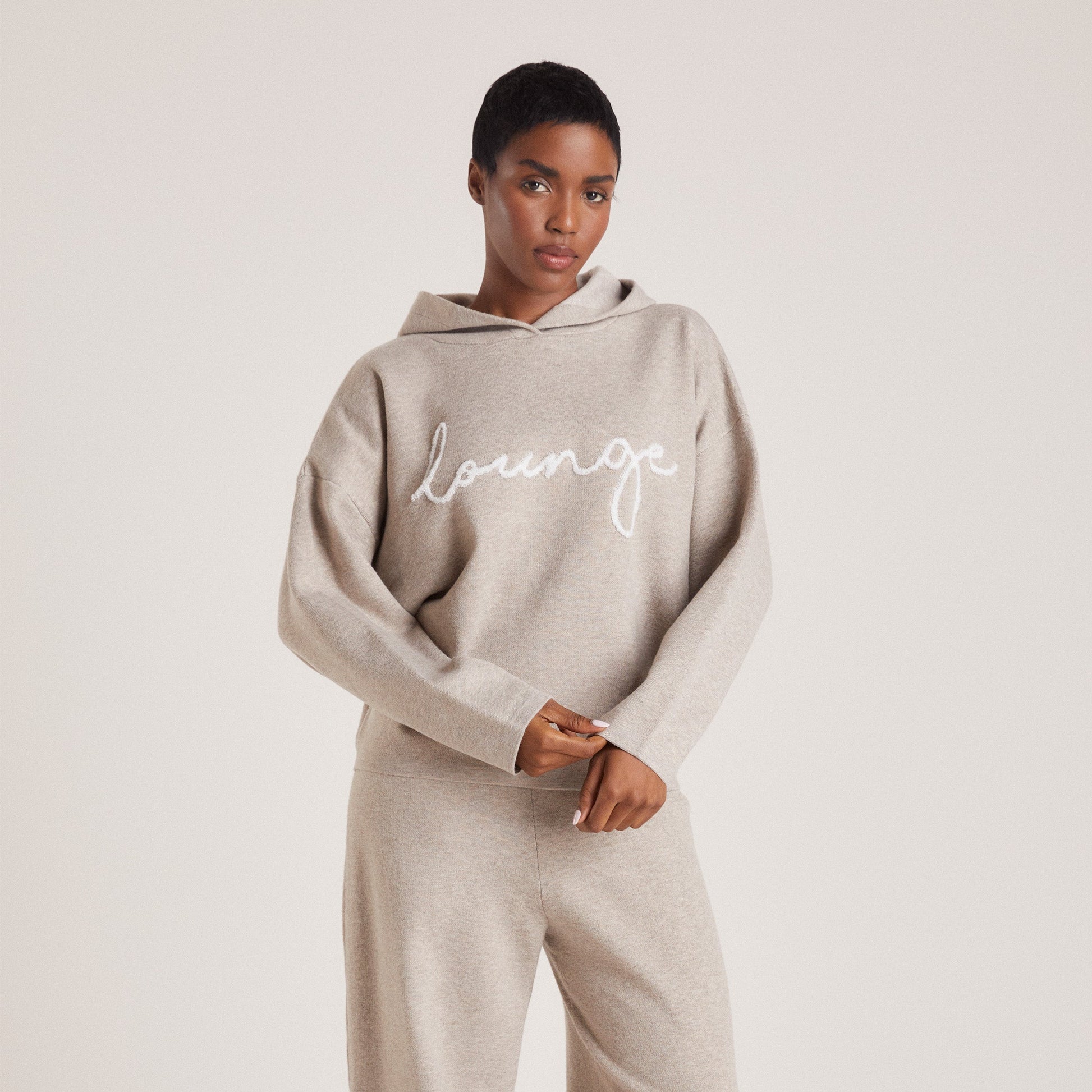 Knitted Lounge Hoodie - Taupe Marl