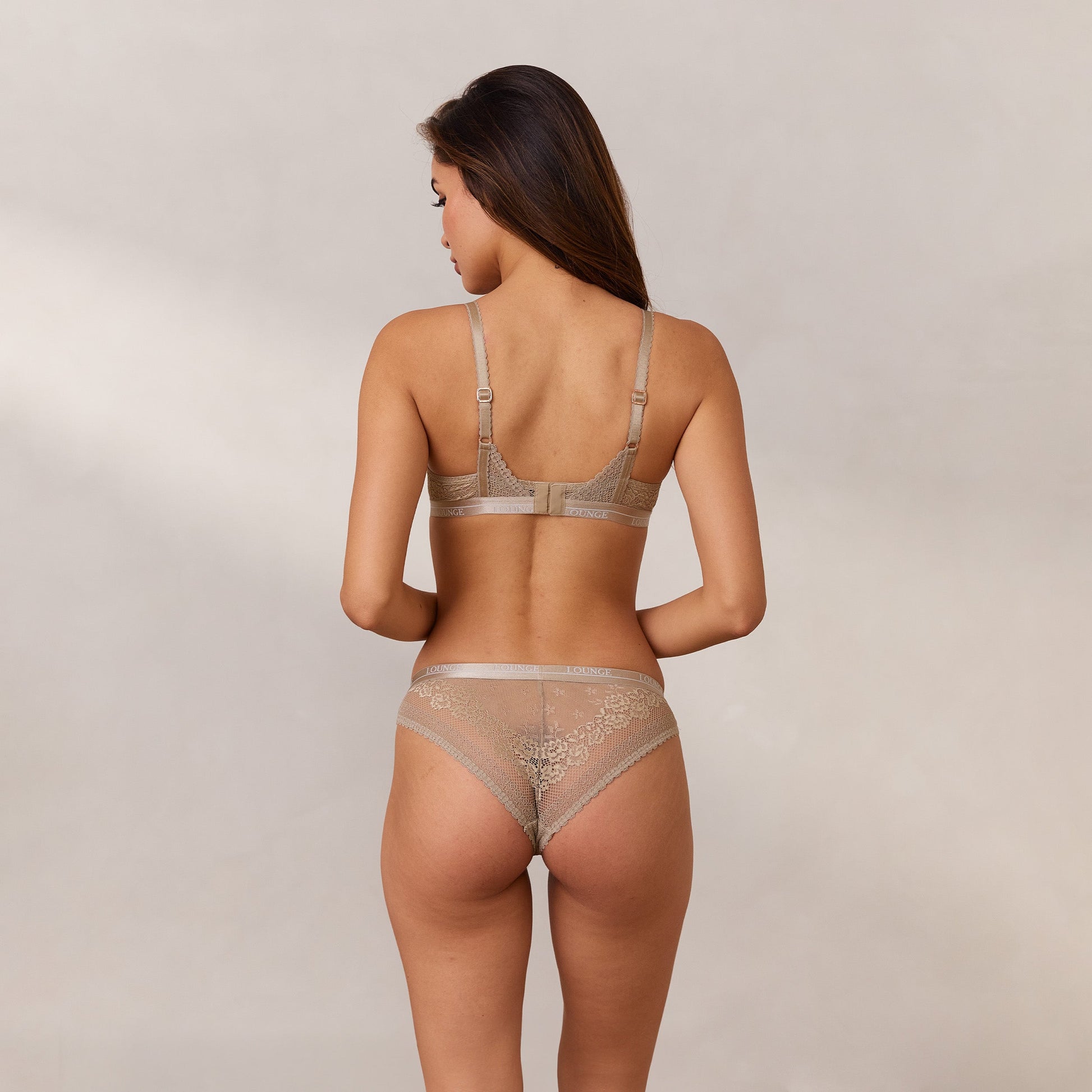 - Decorative picot elastics throughout