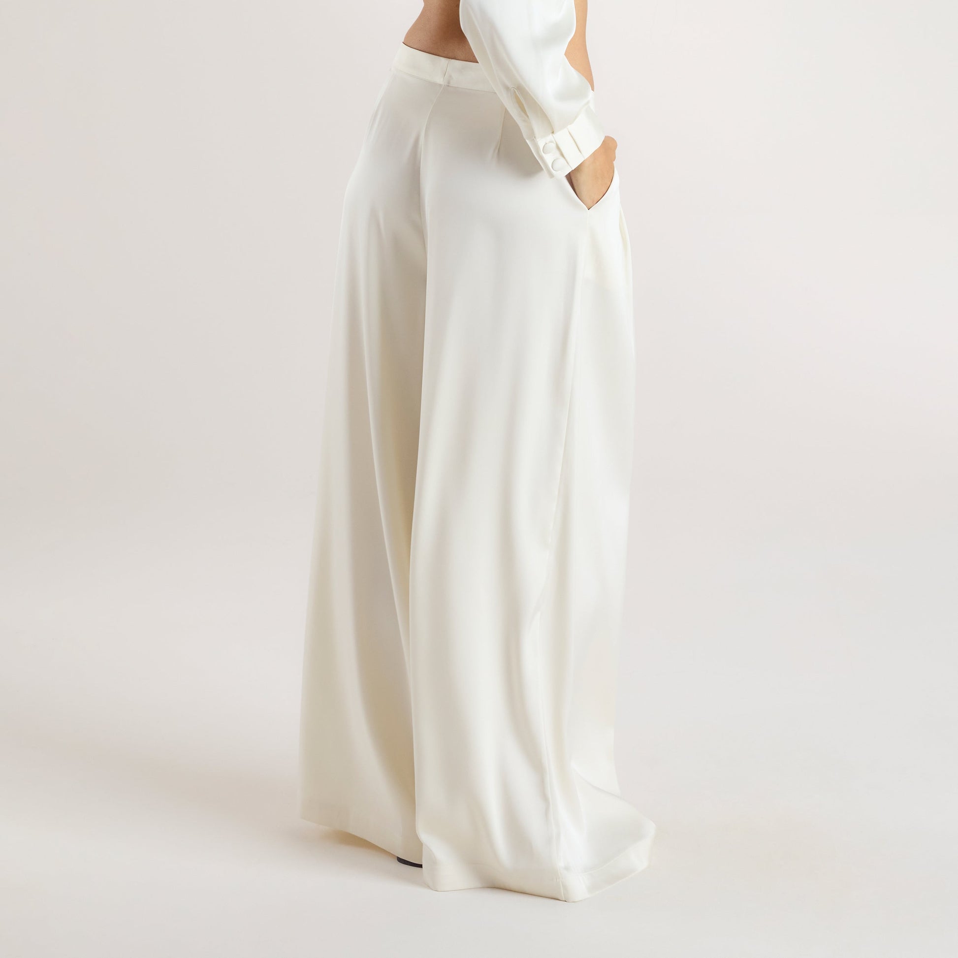 Mimi Satin Pleated Trousers - Cream