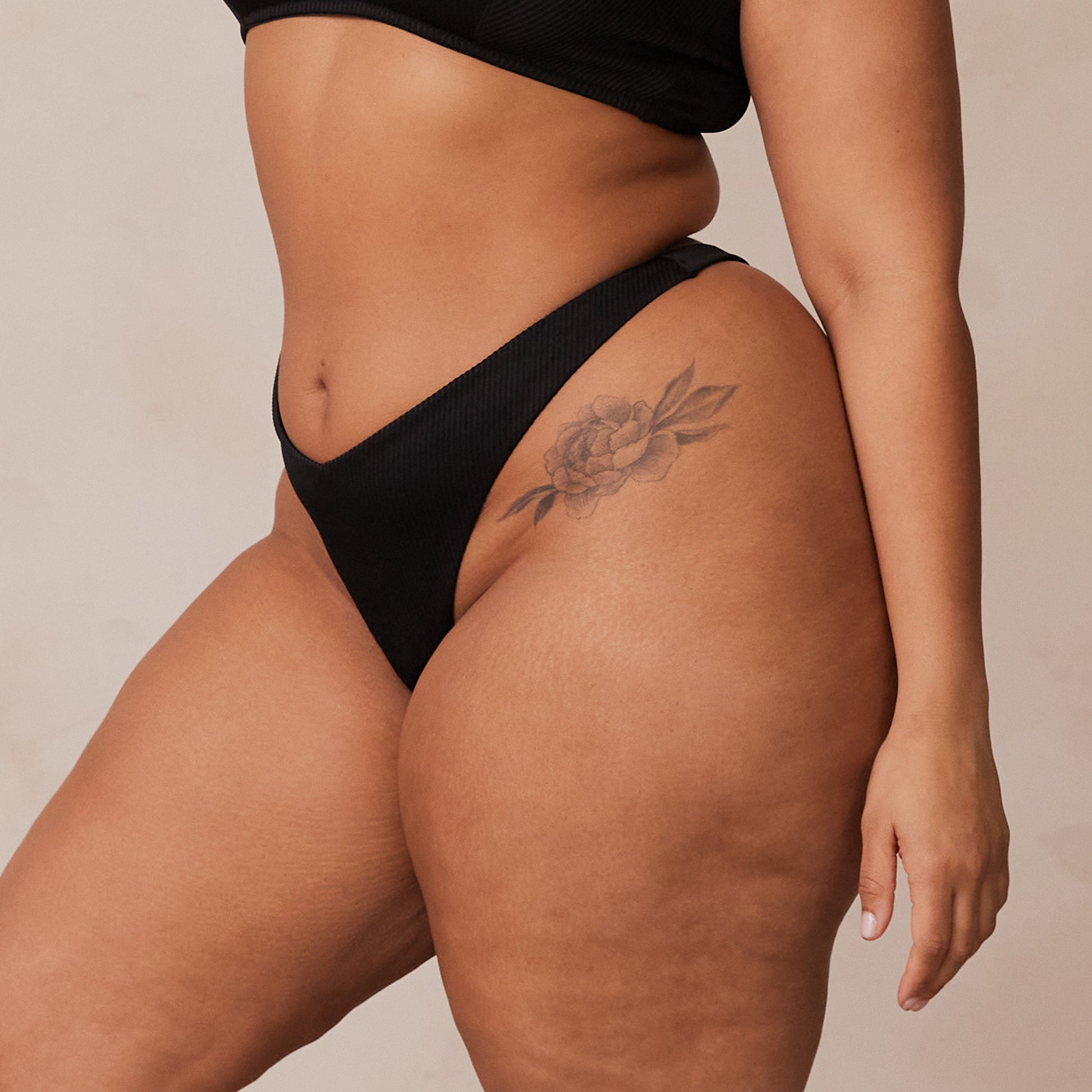 Ribbed Triangle Thong - Black