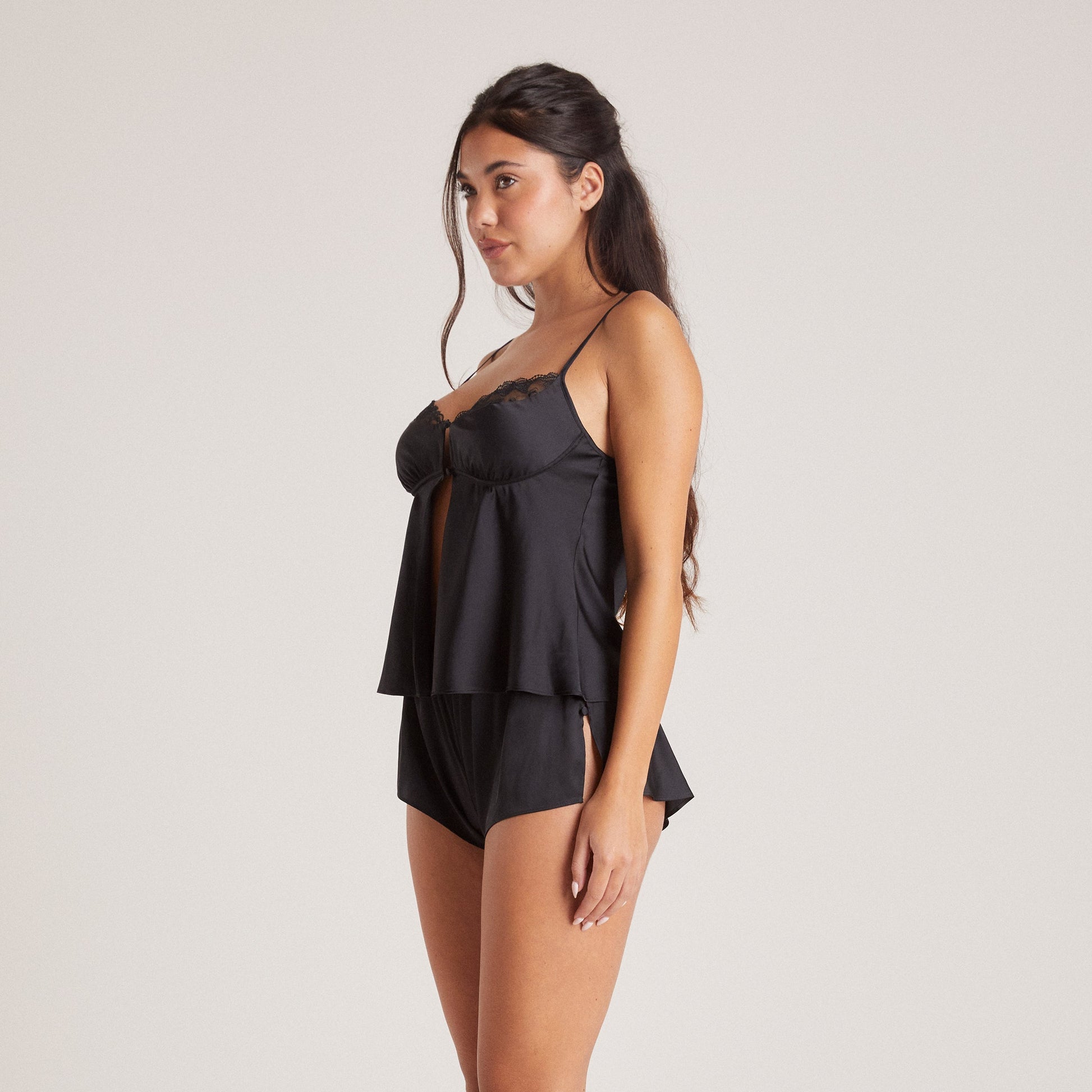 Bow Satin Cami Pajama Top - Black