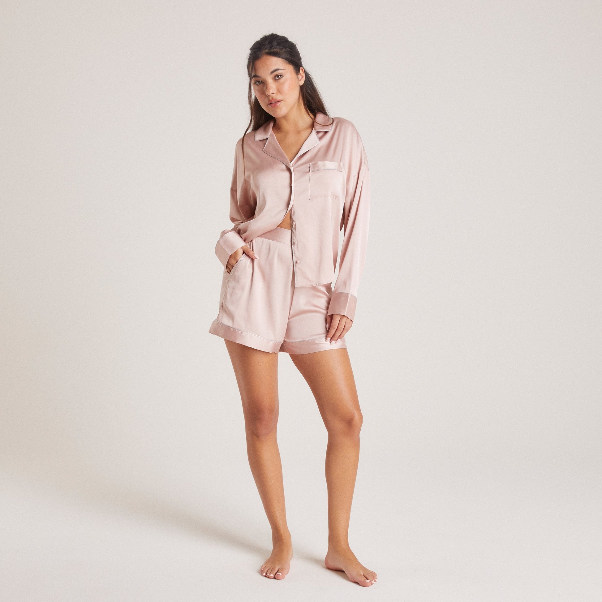 Sparkle Satin Pajama Shorts - Blush