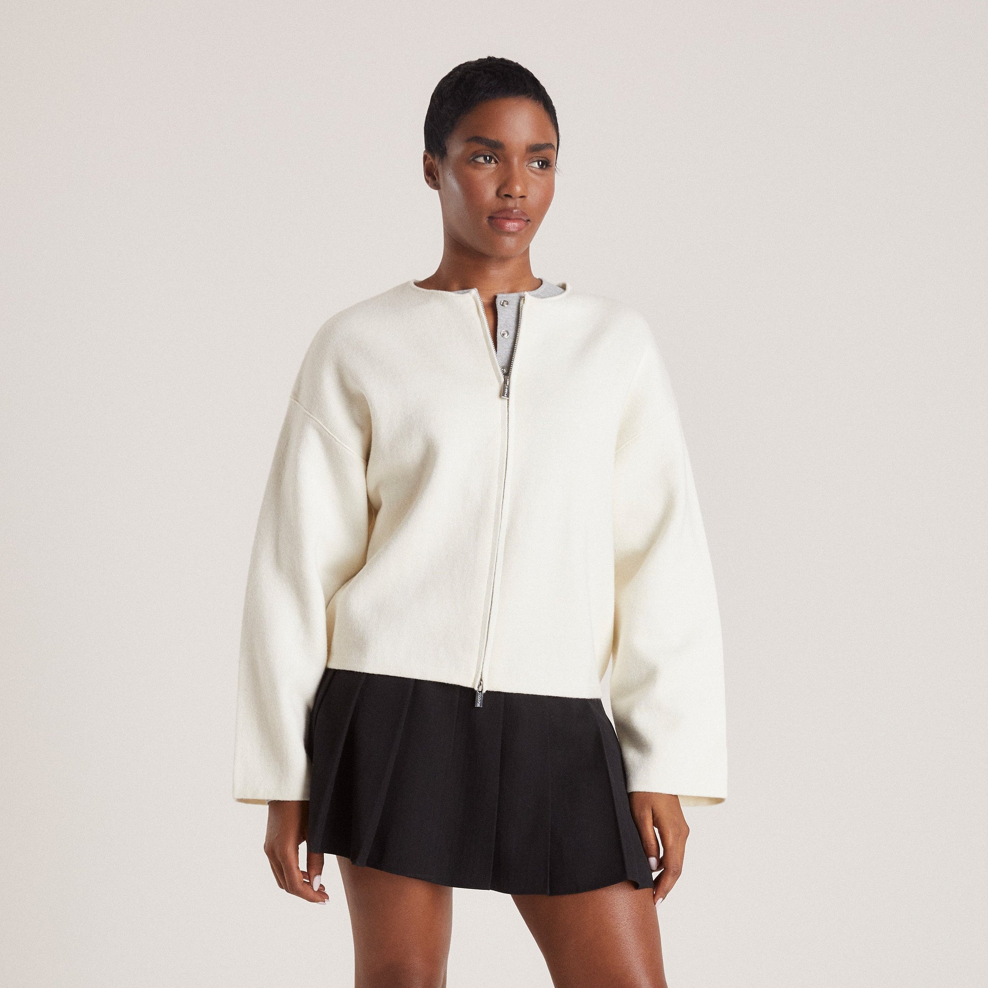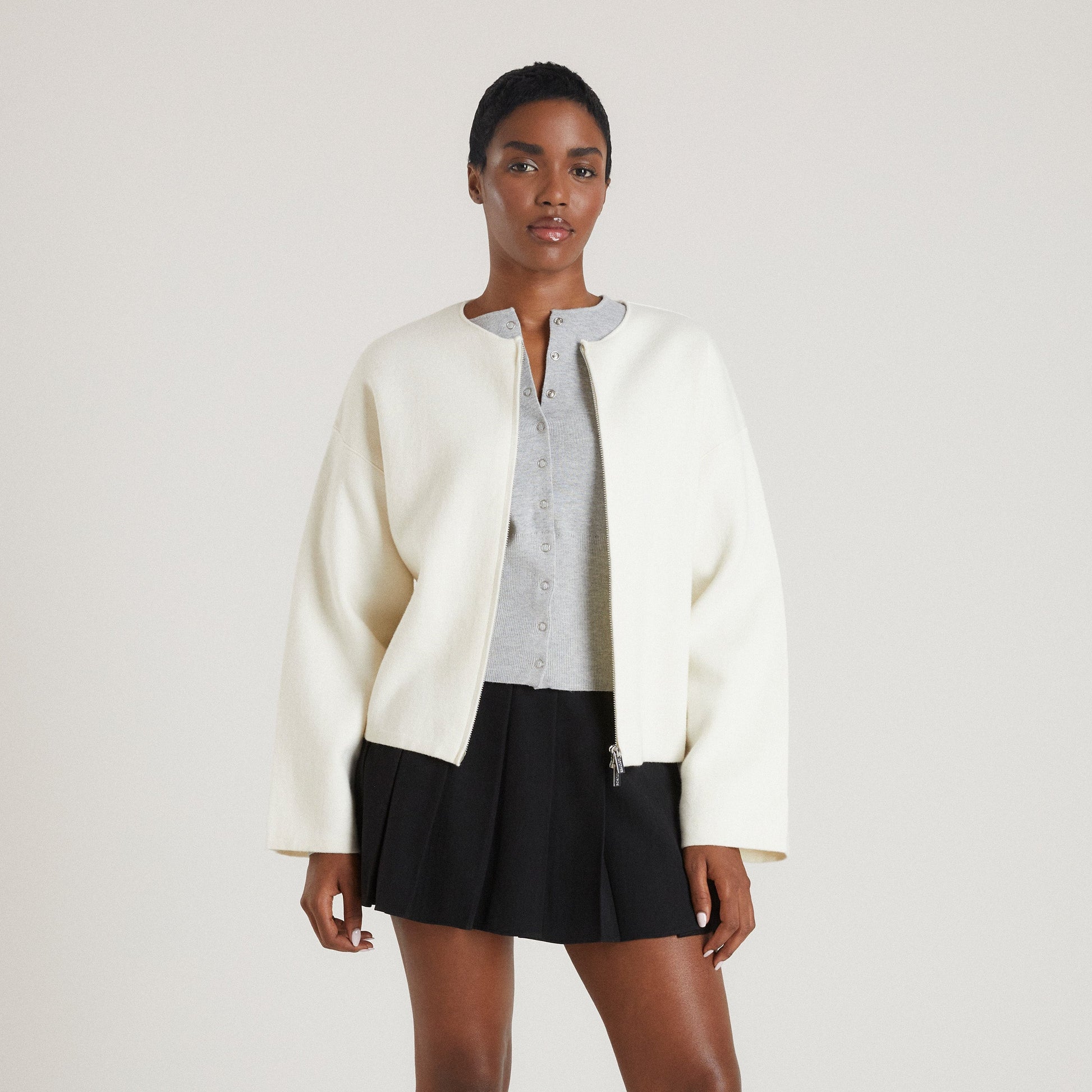 Zip-Up Cardigan - Creme